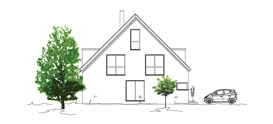 Einfamilienhaus mit Garage und überbautem Studio, modern und ansprechend, flexibel und kinderfreundlich.