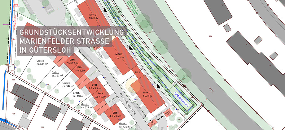 Hier entstehen 10 Wohnungen und eine Doppelhaushälfte mit Studentenwhg.