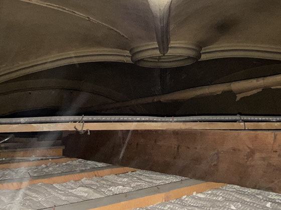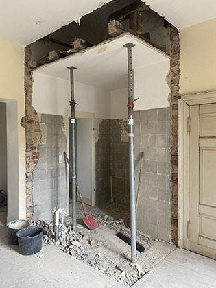 Im Zuge der Deckenabhängung in den 1960-er Jahren wurden Teile des Gewölbes zerstört, das nun wieder freigelegt wurde. Der Boden mit Mosaikfliesen wird mühsam instand gesetzt und die Kassettentüren werden aufgearbeitet. Das Gebäude wird in Teilen saniert und zeigt sich zum „Tag des offenen Denkmals“ in dem bisher umgebauten Zustand.