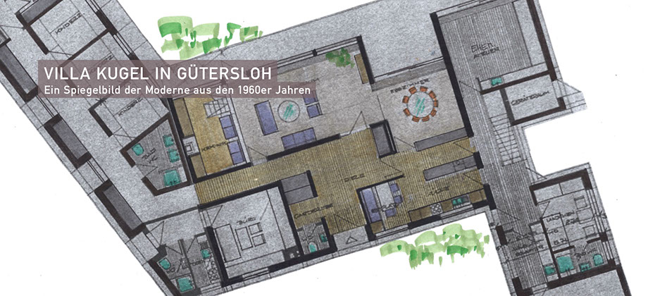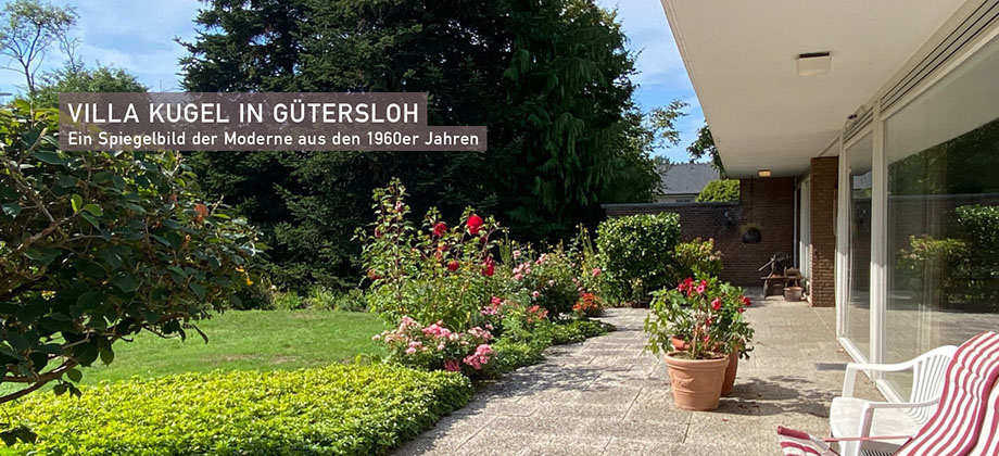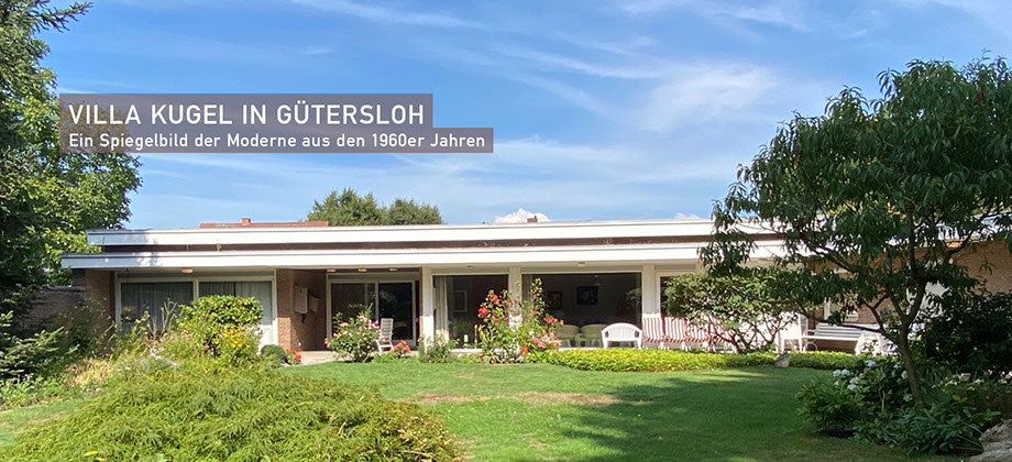 Understatement. Der 1967 erbaute Bungalow des renommierten Gütersloher Architekten Lothar Trede zeigt die typischen Merkmale der Flachdach-Moderne auf und spiegelt das damit verbundene Lebensgefühl wider. Auf dem rund 1.850 Quadratmeter großen, nicht einsehbaren Grundstück mit altem Baumbestand wird dem Gebäude Raum gegeben und die Natur durch die großen Fensterflächen in den Wohnraum geholt.
