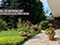 Typisch sind auch der schlicht gehaltene Eingang und die Garage, die im Grundriss des Hauses mit eingeplant ist. Damit erhielt das Auto den gleichen Stellenwert wie der Wohnraum. Einmalig bei diesem Bungalow ist die Verbindung zwischen Architektur und Natur.
